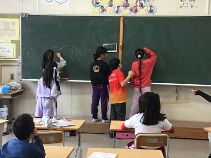 1月31日 お楽しみ会 2年生 公開日 2024/01/31 更新日 2024/01/31 校長室から 10秒でお題のものをたくさん描くゲームです。 司会の子たちが説明しました。 「お題はりんごです。用意どん」