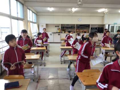 音楽室に入っていくと、4年生が元気な歌声を聴かせてくれました。