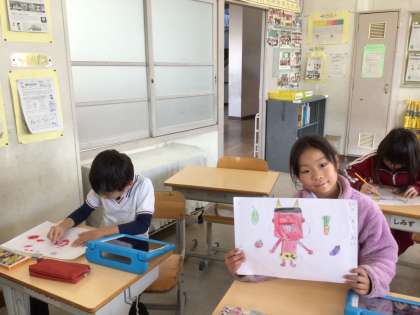 描いた鬼の絵を見せてくれました。