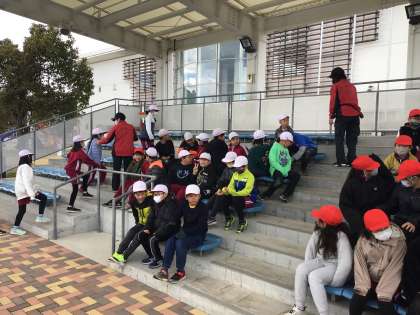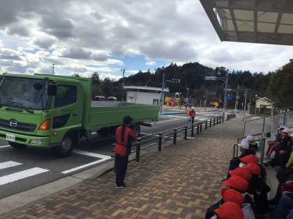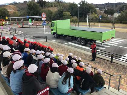 交通安全学習センターに到着しました。 4年生は自転車の安全な乗り方を学習します。