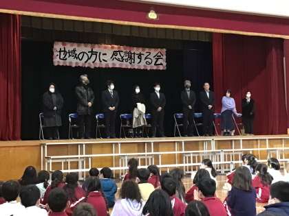 読み語りや110番の家、東門近くのみかんのお世話など、子どもたちのために活動してくださっている地域の方に感謝の気持ちを伝えました。