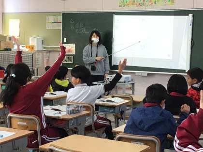 立方体の展開図を組み立てると、どの辺とどの辺が重なるかという課題に挑戦していました。