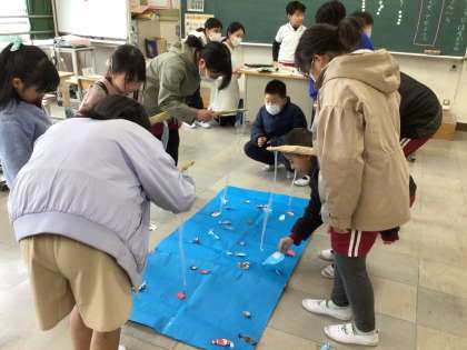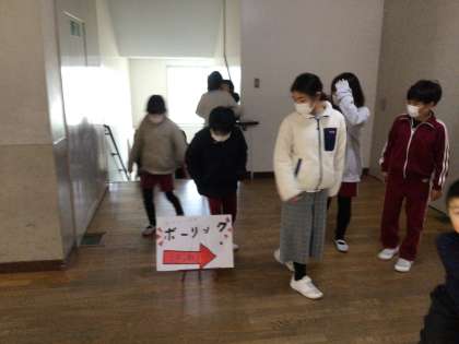 今からゲームラリーです。 5年生が準備したお店をグループで回ります。