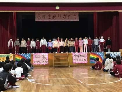 3月5日 6年生を送る会 その6 公開日 2024/03/05 更新日 2024/03/05 校長室から ゲームが終わり、放送が入りました。 全員 体育館に戻ります。 1年生から順番に6年生へ感謝のメッセージを伝えます。