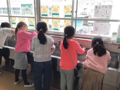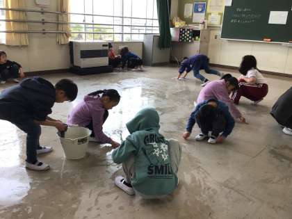 今日は水が冷たいので、雑巾を洗うのに気合が必要かと思いきや・・・楽しくおしゃべりしながら洗っていました。