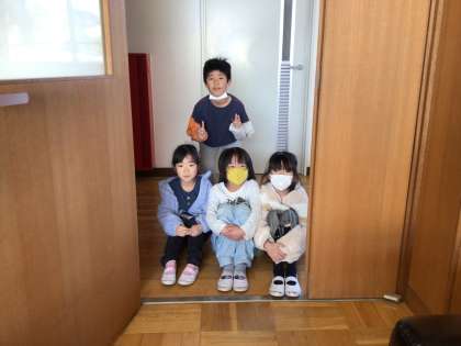 校長室のドアを開けたら、子どもたちがならんで座っていました。