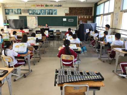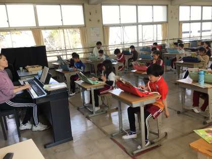 鍵盤ハーモニカで「こぐまの二月」を演奏しました。 とても上手でした。拍手。