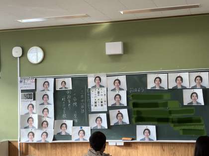 今日は、担任の先生の顔写真が黒板一面に貼られていました。 ドッキリ大成功でした。