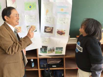 3月15日 国語 国際3年生 公開日 2024/03/15 更新日 2024/03/15 校長室から 調べたアルゼンチンのことを発表してくれました。 「このサッカーをしている人は誰ですか?」 「メッシです」