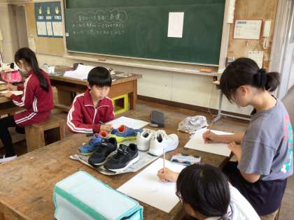 4月15日 図工 6年生 公開日 2024/04/15 更新日 2024/04/15 校長室から 「自分の靴を自由に表現」 驚きました! 靴が机の上に乗っているからです。 自分の靴を思い思いに表現しました。