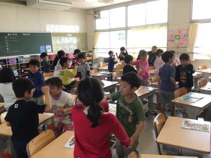 4月19日 音楽 1年生 公開日 2024/04/19 更新日 2024/04/19 校長室から ワン、ツー、スリー、フォー、ファイブ、シックス、セブン 体でリズム遊びをしました。 楽しく動くことができていました。