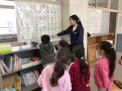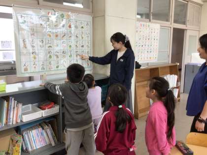 あいうえお表を見ながら、リズムよく唱えていきます。 読めるようになったひらがながたくさんあります。