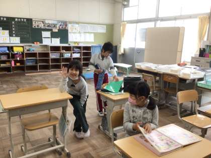 「おはようございます」 笑顔でこたえてくれる子も。