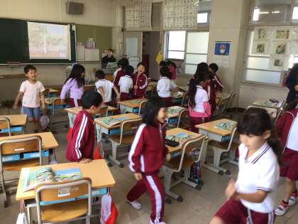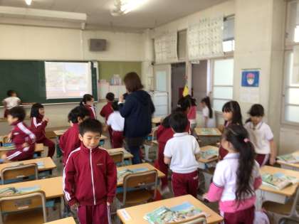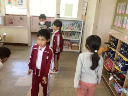 「となりのトトロ」の「さんぽ」を歌いながら散歩しました。
