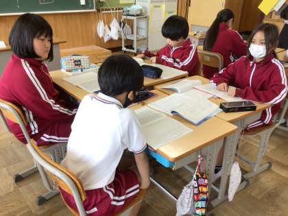 自分の考えを4人グループの中で発表します。