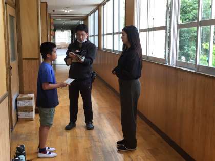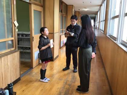 会話のテスト ALTとの会話の様子を担任の先生が見ています。 笑顔、アイコンタクトができていますか?