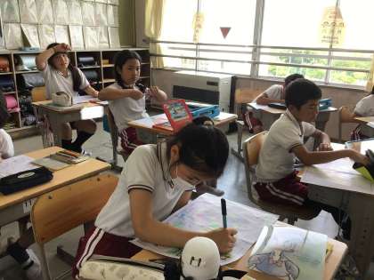 白地図の色塗り 完成が近づいてきました。