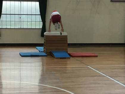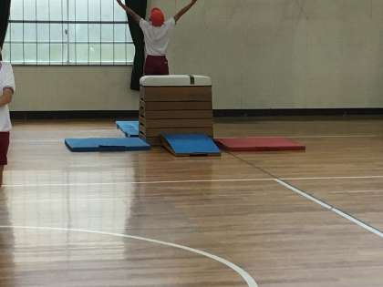 跳び箱運動 閉脚跳びの練習をしました。 足を閉じて跳び箱を跳び越えるのは、難しいようです。