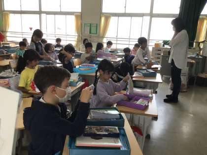 おっとその前に、お道具箱を出して整とんします。