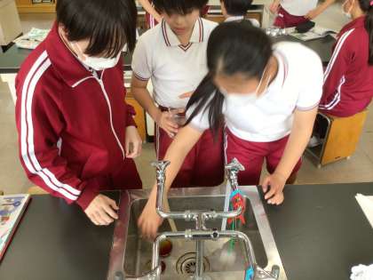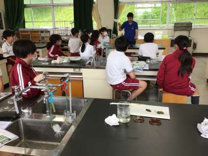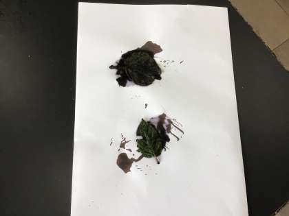 朝、アルミはくで覆っておいた葉と何もしていない葉、 ヨウ素溶液を使って違いを調べました。
