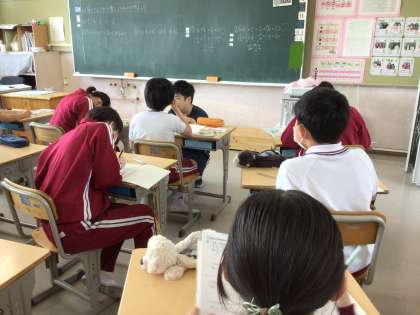 5月24日 算数 6年生 公開日 2024/05/24 更新日 2024/05/24 校長室から 算数の友に取り組んでいました。 4/5時間は何分ですか。 「これ かけるの?割るの?」 「どっちかやれば、答えが出るって」 ・・・・・・・。