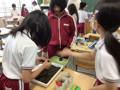 5月27日 理科 4年生 公開日 2024/05/27 更新日 2024/05/27 校長室から ヘチマとゴーヤがなかなか発芽しません。 一度、牛乳パックの苗床をトレイにあけて、 タネを捜索しました。 食べられちゃったのかな? なかなか見つかりません。