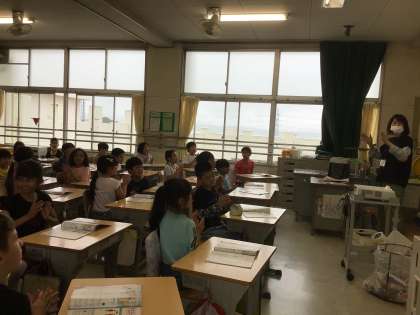 5月27日 音楽 2年生 公開日 2024/05/27 更新日 2024/05/27 校長室から 月曜日の5時間目。 今日は朝から雨ですっきりしません。 そんな気持ちを吹き飛ばすような元気な声で 「はしの上で」の手遊びを歌いました。