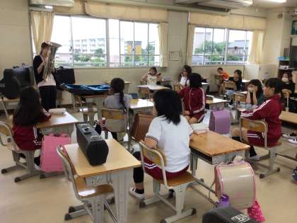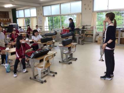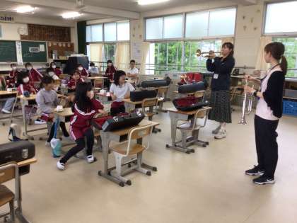 トランペットやトロンボーン、ユーフォニウム。 「こんな音が出ます」先生が見本を見せてくれました。