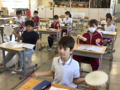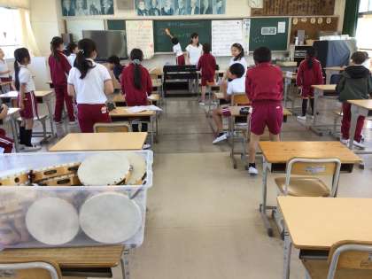 5月29日 音楽 4年生 公開日 2024/05/29 更新日 2024/05/29 校長室から タンブリンと鈴にわかれて、交互にリズムを打ちます。 👦👧「合わせてみたい」「校長先生も!」 タンブリンを差し出されました。 最近こういう無茶ぶりが多いです。 もちろん参加させていただきました。