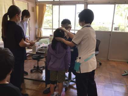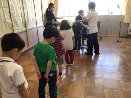 5人ずつ保健室に入り、サークルの中で順番を待ちました。