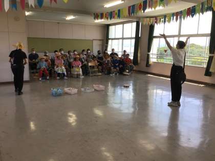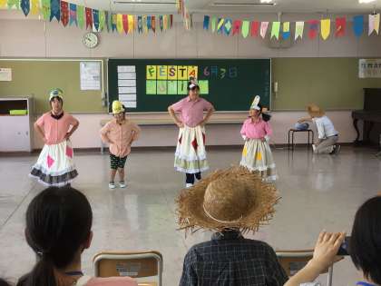 6月3日 フェスタ・ジュニーナ 7・8・9くみ 公開日 2024/06/03 更新日 2024/06/03 校長室から チャレンジルームに移動して フェスタ・ジュニーナが始まりました。 ブラジルで豊穣を祈念してして行われるお祭りだそうです。 みんなでリズム楽器を持って、サンバのリズムを打ちました。