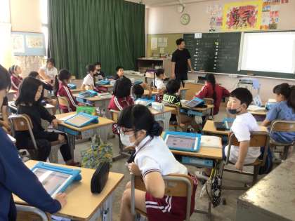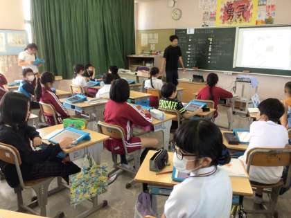 先週、学習用タブレットを持ち、水道施設の写真を撮っていました。