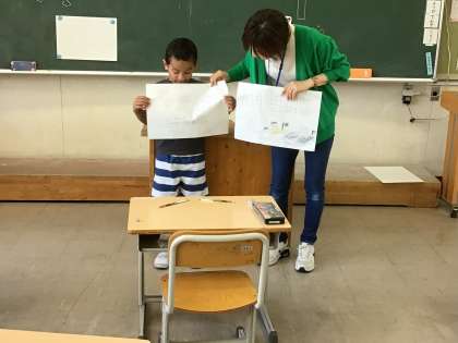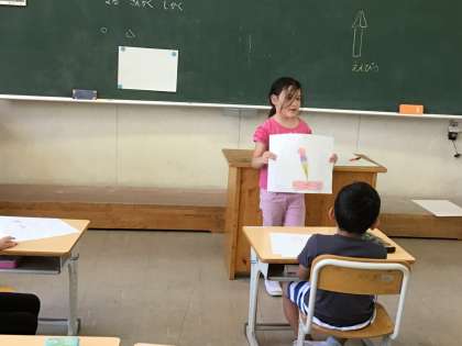 かいてみよう まる さんかく しかく を使って 絵を描きました。 上手に描けましたね。