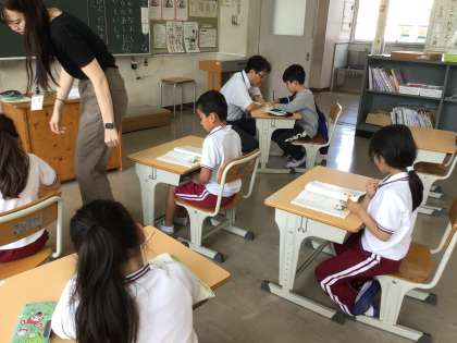 国際クラスの1年生もひらがなの練習が終わりました。 あひるの あくび に取り組んでいます。