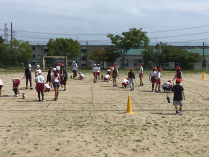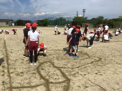 またまた、6年生が運動場で何やらやっています。