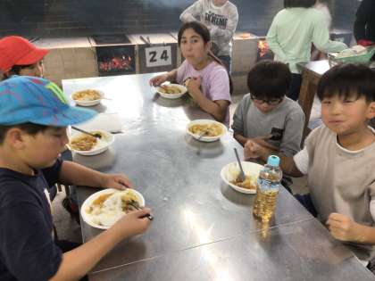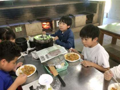 6月21日 キャンプ その6 公開日 2024/06/21 更新日 2024/06/21 学校行事 カレーライス作りは大成功! 「給食のカレーよりおいしいです」 「奥さんの作ったカレーよりおいしいです」 「みんなと作ったのでおいしいです」