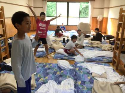 総合野外センターは晴れています。 みんな6時前にごそごそ起き始めました。