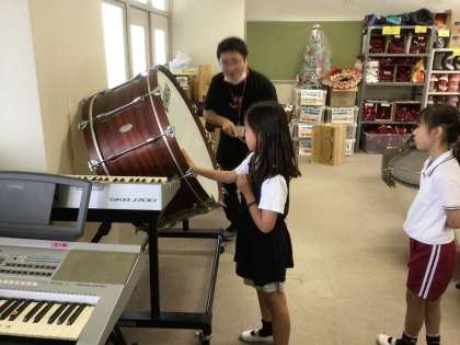 6月27日 理科 3年生 公開日 2024/06/27 更新日 2024/06/27 校長室から 備品室に3年生が入っていくので、何だろうと入っていくと・・・。 理科の学習でした。 先生が大太鼓をたたいたら、その面を素早く触ります。 「どんな感じだった?」