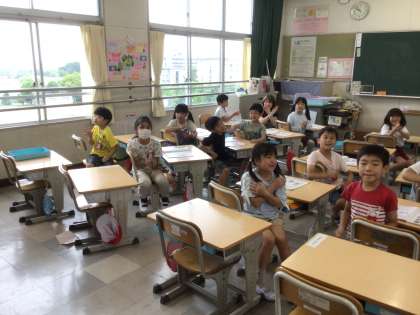 6月28日 音楽 1年生 公開日 2024/06/28 更新日 2024/06/28 校長室から 🎵お腹がなったらぐーぐーぐー 先生「みんな、後ろ見て」 子どもたち「校長先生だ」 先生「校長先生とじゃんけんしたいよね」 子どもたち「うん」 そういう訳でみんな後ろを向いているのです。 じゃんけんの瞬間は、手を高くあげて✋を出していたので 写真を撮ることができませんでした。