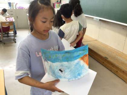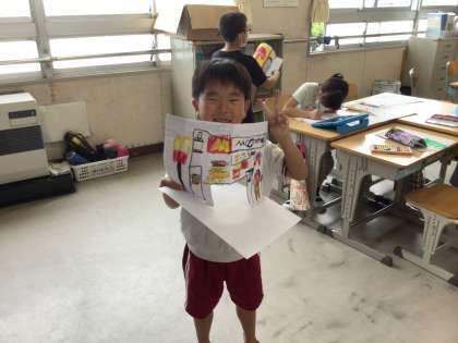 教室に入って行くと 「写真撮って!」 「見て」 みんな自慢げに作品を見せてくれました。