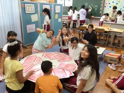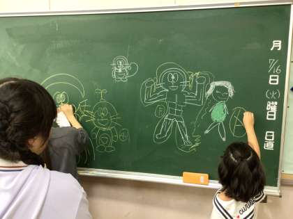 相談室に行くと、折り紙、トランプ、黒板お絵描き、好きなことをして過ごしていました。