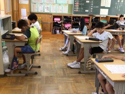 9月10日 算数のテスト 5年生 公開日 2024/09/10 更新日 2024/09/10 校長室から 静かです。 いないのかな?とのぞいてみたら、テスト中でした。 できた子は、先生問題を解いていました。