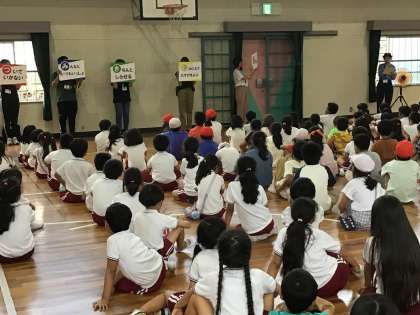 9月12日 避難訓練その2 公開日 2024/09/12 更新日 2024/09/12 校長室から 無事を確認し、体育館に避難しました。 豊田警察署から署員さんが来て、家に帰ってからも不審者から自分の命を守るための合言葉を教えてくださいました。 つ み き お に 覚えたかな?