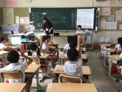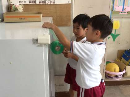 ナイロンテープ(タフロープ)を使って、長さを測りとり黒板で比べっこしました。