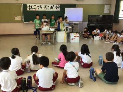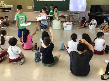クイズに正解するとプレゼントがもらえます。 折り紙で賞品を作りました。