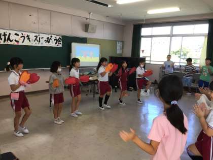 9月26日 発表会 3年生 その3 公開日 2024/09/26 更新日 2024/09/26 校長室から 運動の大切さを発表しました。 ストレッチも有効です。2年生もいっしょにストレッチをしました。 その後でエビカニビクスをいっしょに踊りました。