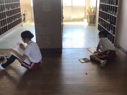 校内でお気に入りの場所へ行ってそれぞれスケッチしました。