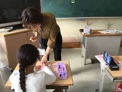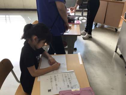 昨日の宿題で練習した漢字テストをしました。 ヒントをもらってなんとか・・・。