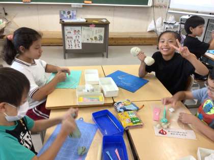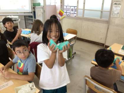 10月3日 図工 3年生 公開日 2024/10/03 更新日 2024/10/03 校長室から 粘土を切ったり、かき出したりして遊ぼう 糸を使って切ったり、ヘラを使ってかき出したり、今までとは少し違う方法で形を作りました。
