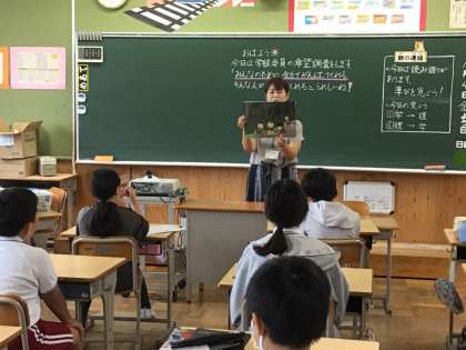 今日はみんなが楽しみにしている読み語りの日です。 5年生の様子です。
